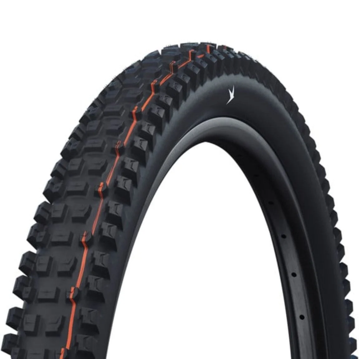Thanks to its radial carcass, the 27.5 in. Schwalbe Albert Gravity Pro tire not only sticks to the ground, it conforms to the terrain—yielding more grip, more comfort, more precision and more control.