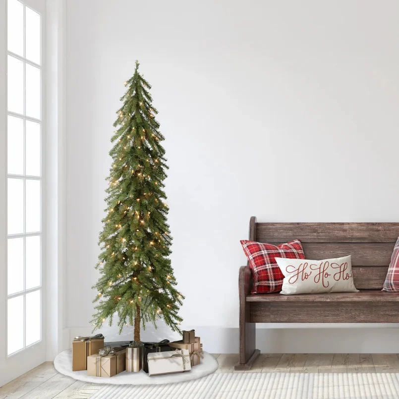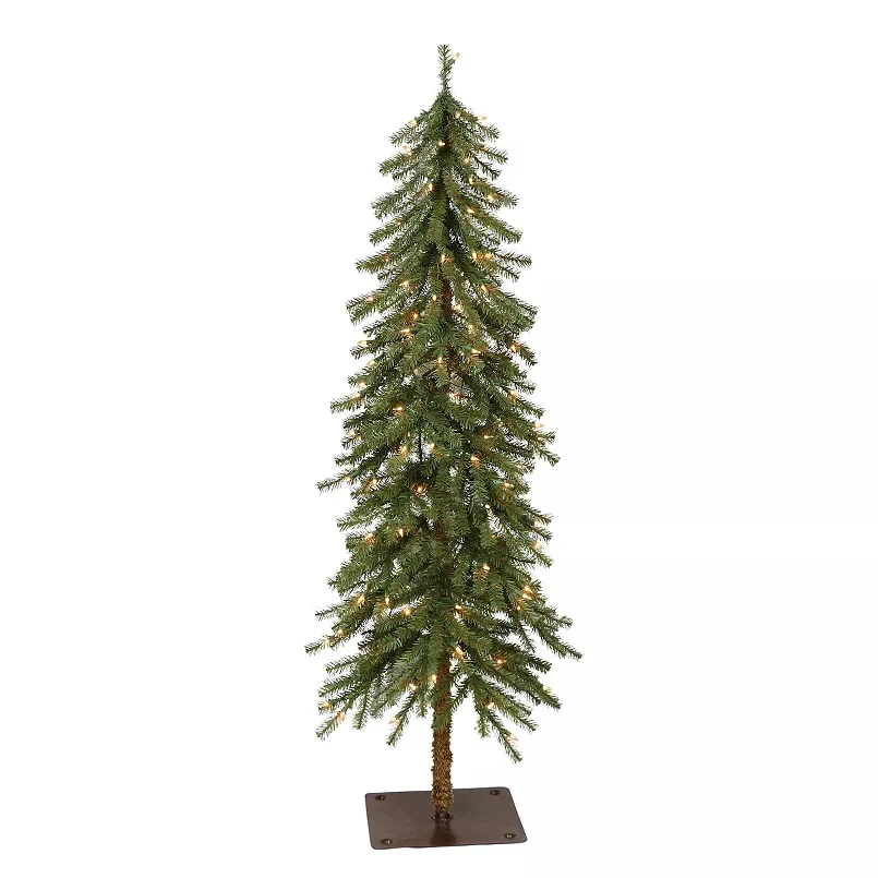 Bring the holiday spirit into your home with the PULEO INTERNATIONAL 6′ Alpine Artificial Christmas Tree. This pre-lit artificial tree features green branches and 200 clear incandescent lights to brighten your home for a dazzling Christmas display. With life-like pine needles and a realistic appearance, this wrapped tree is sure to add warmth to any room or space for years to come. The included sturdy metal base will safely and steadily support your tree and decorations. Plus, if one bulb burns out, the rest remain lit. Constructed from flame-retardant and non-allergenic materials, this tree provides a safer alternative to real trees. The Alpine Tree with 200 lights measures 72 tall x 28 in diameter and weighs 15 lbs., allowing for easy placement and versatile Christmas decorating anywhere in your home.