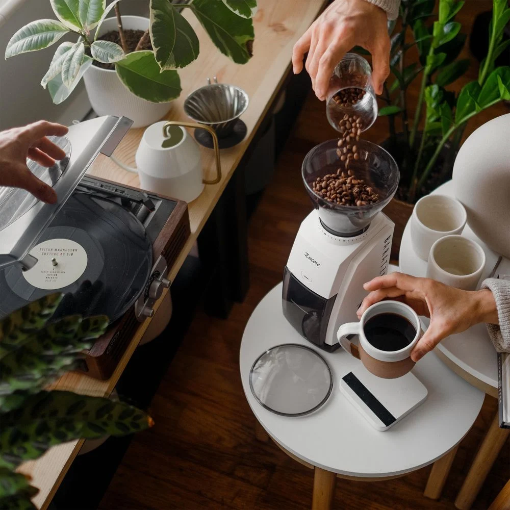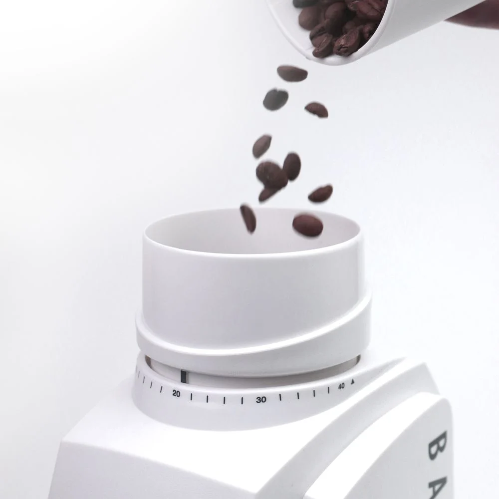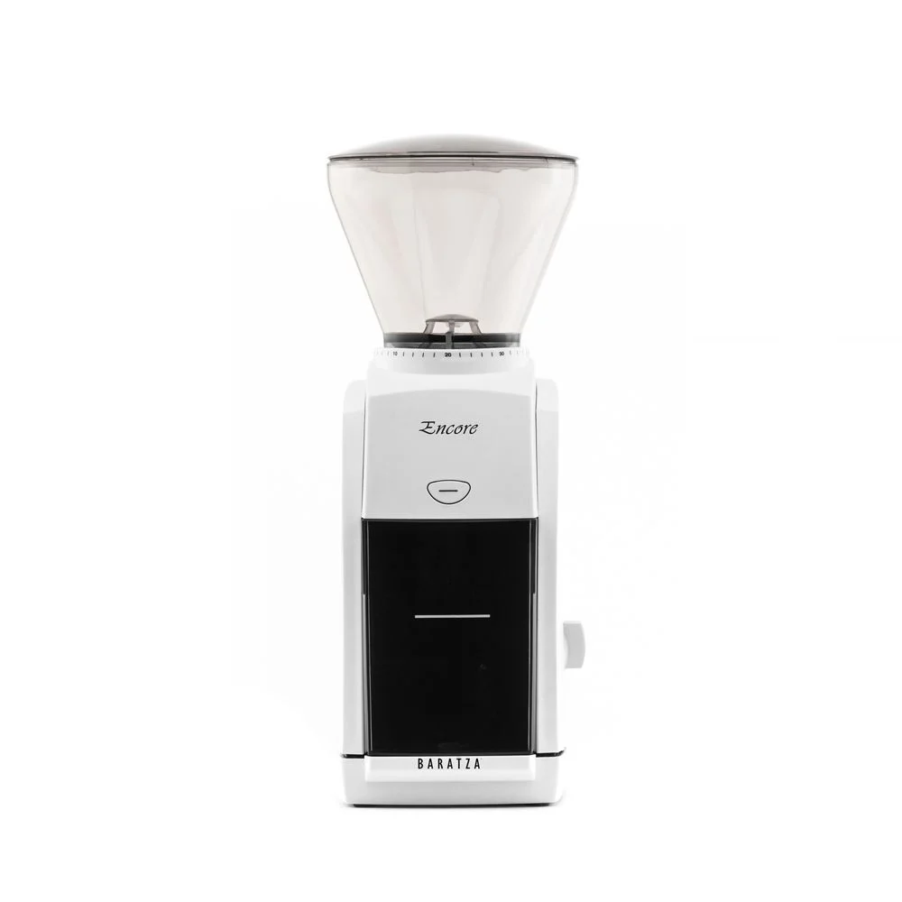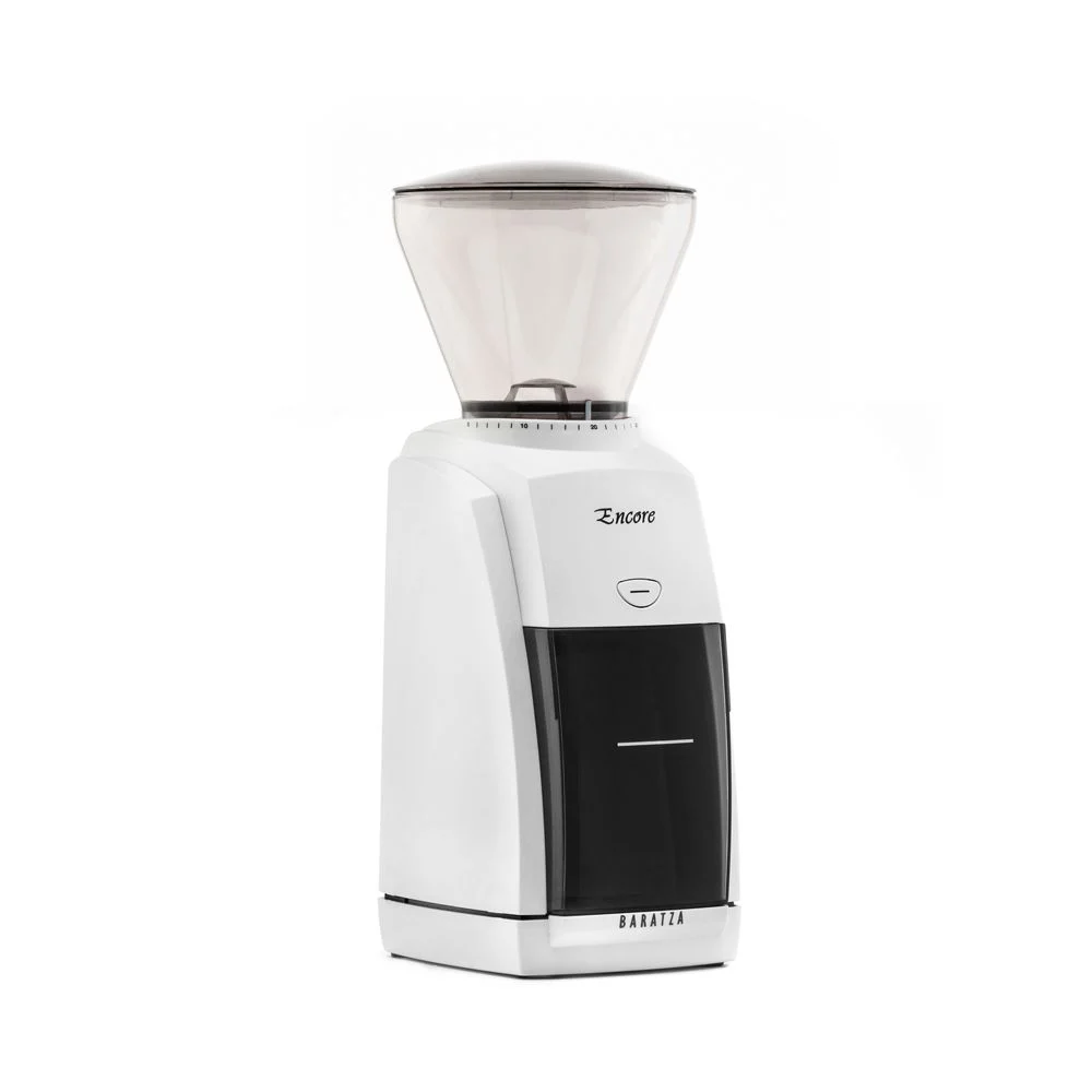 The Baratza Encore coffee grinder features precision-cut, commercial-grade steel burrs that produce a wide range of grind profiles perfect for everything from French press to pour-over to espresso. Adjustable to 40 different levels of coarseness and fineness, this state-of-the-art coffee grinder has a powerful, high-torque motor that turns slowly for cool, quiet operation and won’t heat up beans. Clad in bright white with black accents, the burr grinder has a crisp presence on your countertop or coffee cart.Plastic, nylon, rubber and acrylic. Precision-cut steel burrs. Clean exterior with a damp cloth. Made in Taiwan.