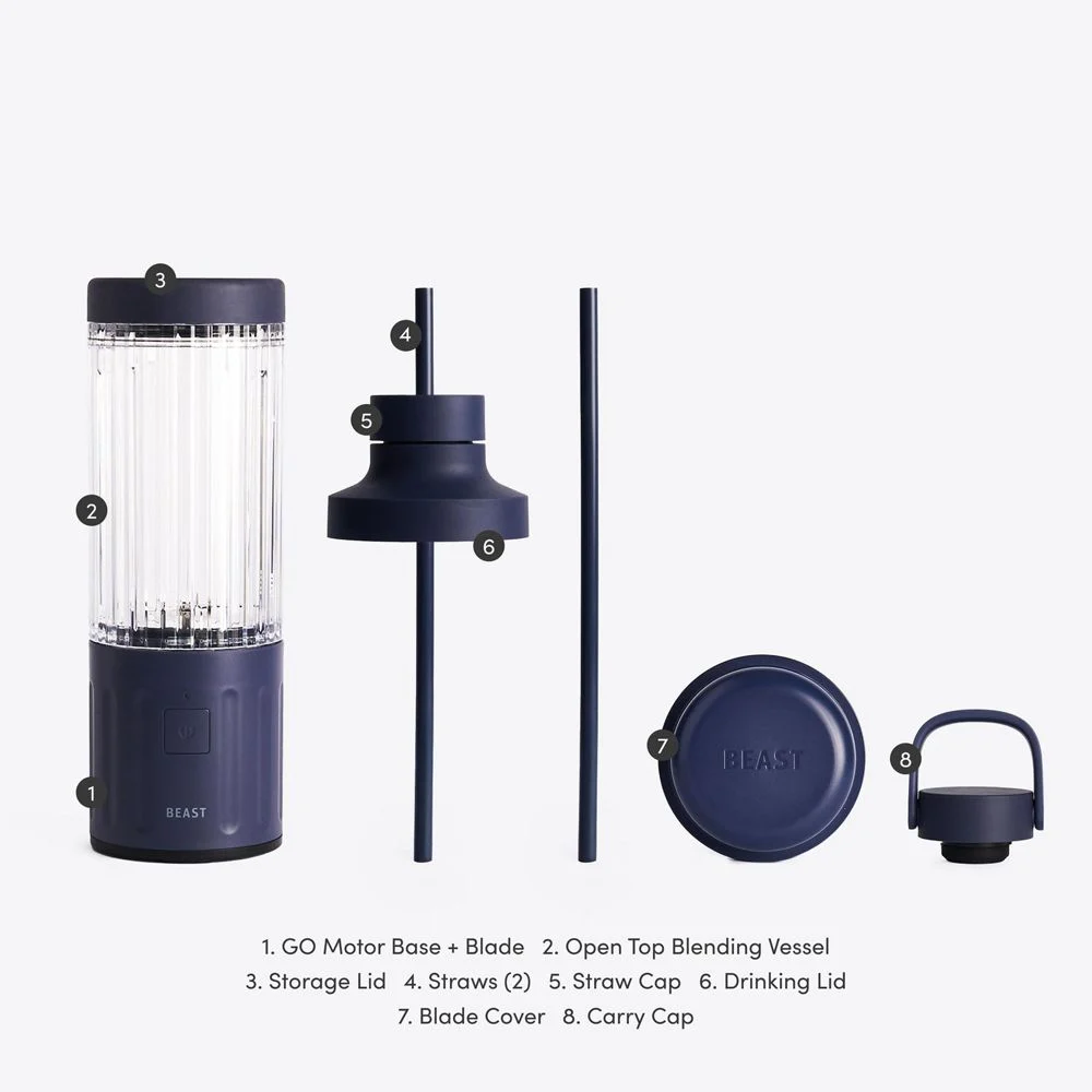 Cordless for go-anywhere convenience, this sleek blender makes it super easy to prepare fruit- and veggie-packed smoothies as well as smooth-as-silk dressings, purees and soups. Simply load up the durable Tritan container with ingredients, twist on the stainless steel blade assembly, invert onto the base and blend or pulse. The ribbed design creates internal turbulence for smooth blends, and the rechargeable battery powers 13 blending cycles on a single charge. Once blending is done, snap on a storage lid for future consumption or pop on a straw lid or drinking lid with carry cap for on-the-go refreshment. The included blade cover makes for safe transport to the cordless blender to a party, picnic, campground or beach.2 functions: Blend and Pulse. 30-sec. blending cycle. Spill-proof lid system. Shatter-proof Tritan™ plastic blending vessel. Blade cover for safe transport. 23-oz. capacity. Includes blender base, blade assembly, blending vessel, carry cap, drinking lid, storage lid, straw cap, 2 straws and blade cleaning brush. Rechargeable via included USB-C cord. Full charge powers thirteen 13-second blending cycles. 39″ charging cord. 1,200 watts. Plastic, metal, nylon, and Tritan™ plastic construction. Top-rack dish-washer safe removable parts; wipe base clean with damp cloth. Imported.