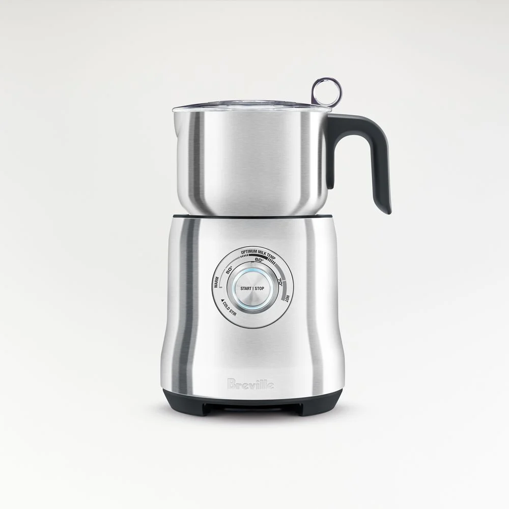 Enjoy silky hot chocolate, flavorful chai or frothy cafe au laits with Breville’s milk frother. Using induction heating, the frother heats gently and easily to create tiny bubbles. Simply choose the latte or cappuccino frothing disc, add milk, select temperature and press start. Once the temperature is achieved, the frother turns off automatically. Use the included measuring cup to add spices, sweeteners or flavorings.Brushed stainless steel. 3-cup reservoir. Latte and Cappuccino frother discs. Measuring cap. Breville Assist ™ ring pull design ensures lid provides a tight seal during operation yet removes easily. 500 watts. Cold Stir, Warm, Optimum Temperature and Hot settings. Regular milk yields best results; results may vary with alternative milks. Imported.