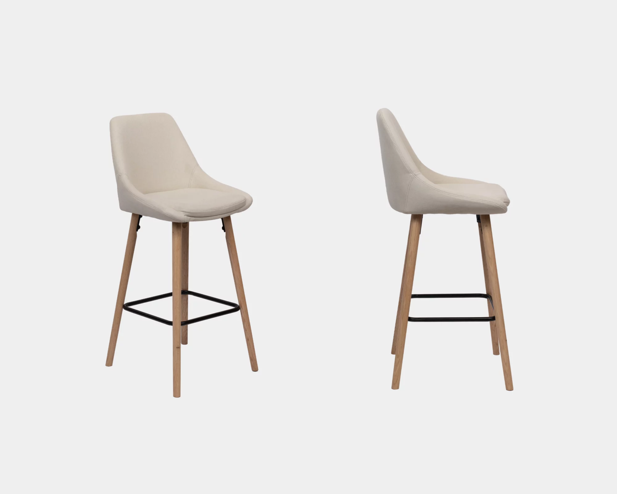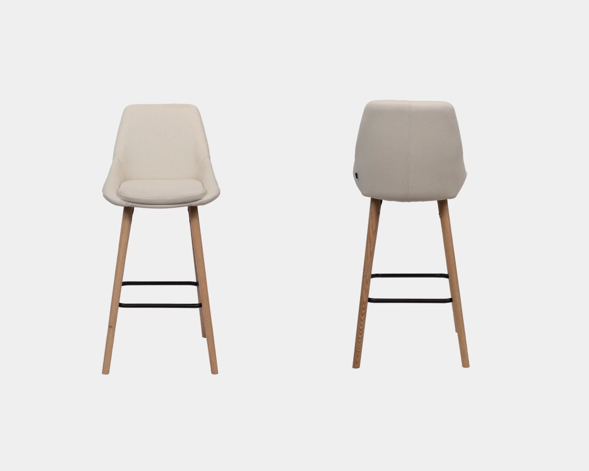 A stylish and durable addition to any kitchen or bar space, this high bar stool features solid red oak wood legs paired with an internal carbon steel frame for enhanced strength and long-lasting stability. The seat is upholstered in soft cream fabric, offering exceptional comfort for everyday use or relaxed evenings at your kitchen counter or bar area.