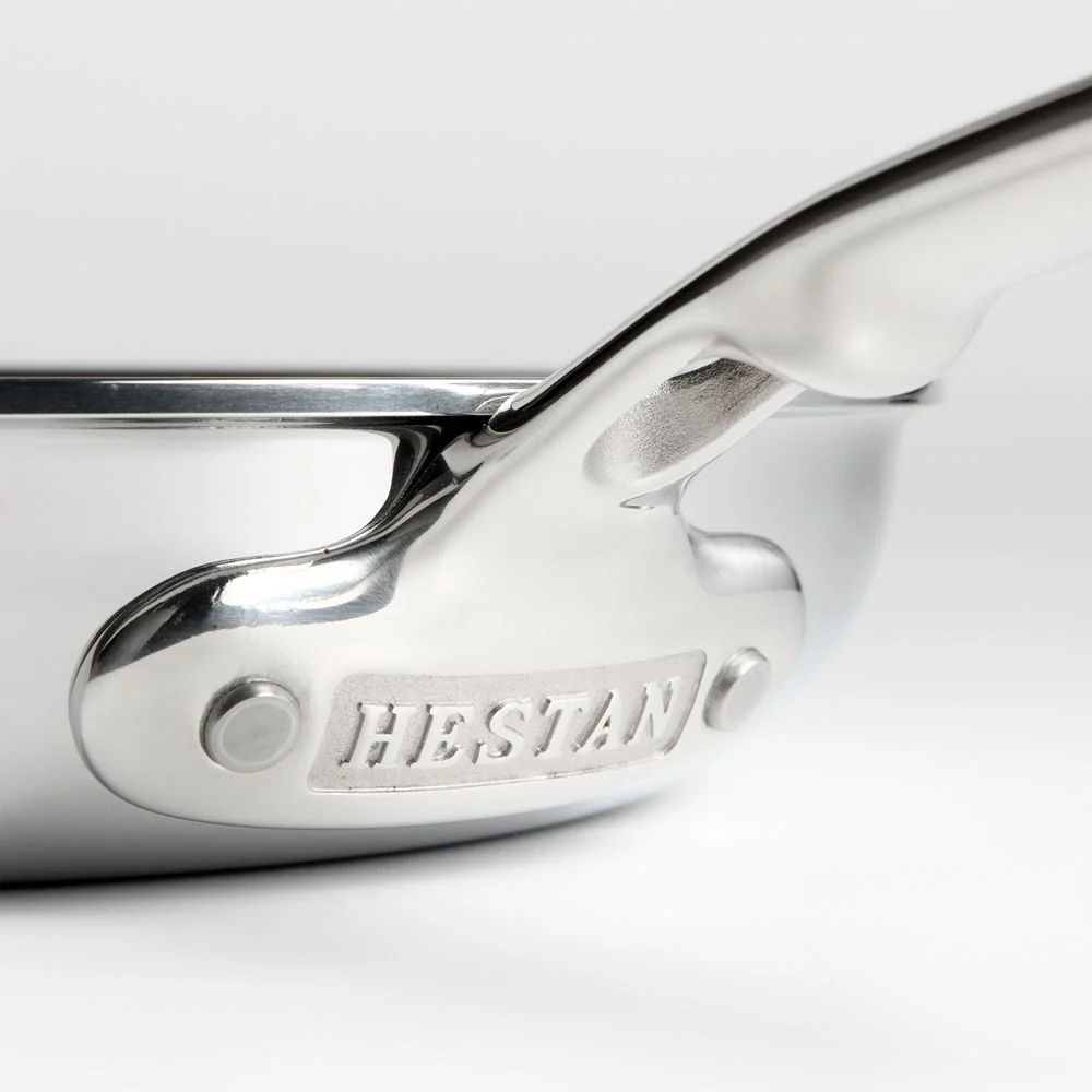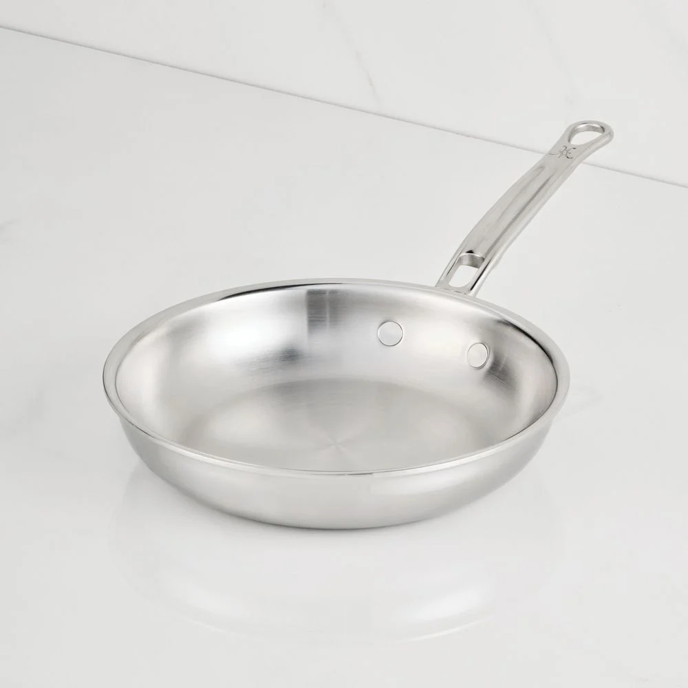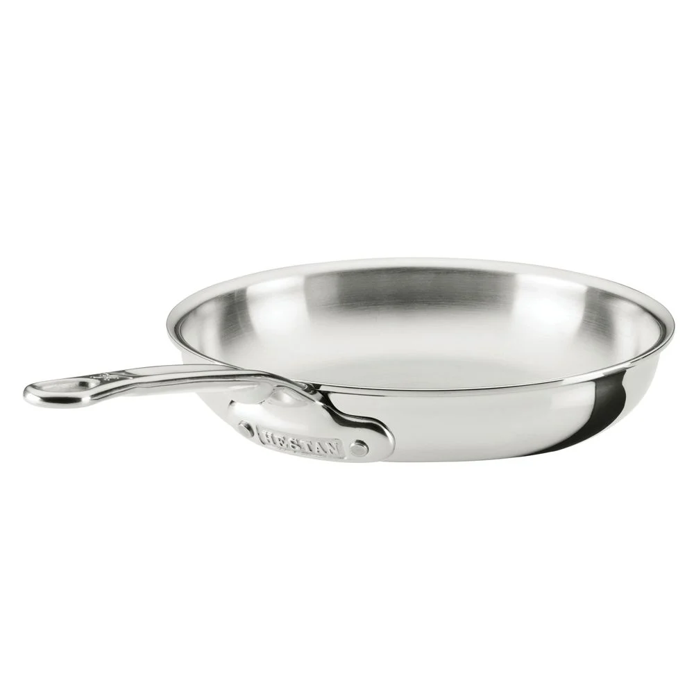 Fitted with a handle thoughtfully designed by chef Thomas Keller, this mirror-polished stainless steel frying pan gleams on the stovetop. The tri-ply skillet sandwiches an exceptional conductive aluminum core between two layers of durable stainless steel for impeccable searing, browning and frying. A thick flared rim pours without drips, and the stay-cool, seamless handle joins the pan with flush rivets for easy cleanup. Crafted in Italy for a luxurious look and professional performance, this oven-safe pan works with any type of stovetop and cleans quickly in the dishwasher.18/10 stainless steel interior with polished finish. Induction-optimized stainless steel exterior with mirror-polished finish. Aluminum core. Polished sealed flared rim for drip-free pouring. Seamless stay-cool handle for easy cleaning. Flush rivets. Metal utensil-safe. Suitable for use with any cooktop including induction. Oven- and broiler-safe to 600°F. Dishwasher-safe. Made in Italy.