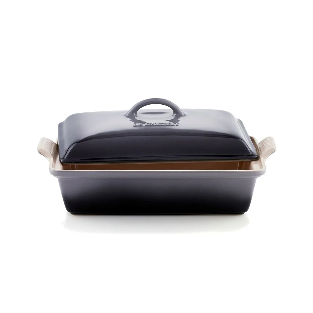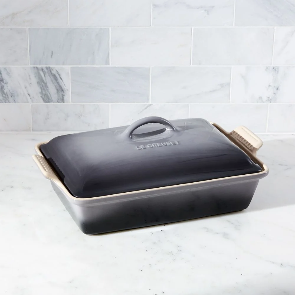 As beautiful as it is functional, this covered rectangular casserole features superior performance in the oven or microwave and is ideal for baked goods and roasted dishes. Enamel-glazed in a décor-friendly neutral, this covered baking dish is crafted of dense stoneware. Made to block moisture absorption to prevent cracking and crazing, the baking dish has a brightly colored exterior that resists scratches and stains. The nearly non-stick interior resists sticking, effortlessly releases foods and cleans up easily. The baker is ideal for quick breads, meatloaf and more, bringing attractive color and Le Creuset style to the kitchen and table. Revered by both professional chefs and home cooks since its 1925 debut, Le Creuset’s classic French cookware is prized for its utilitarian good looks and unsurpassed heat retention.Enamel-glazed stoneware. Dishwasher-, microwave-, freezer-, broiler- and oven-safe to 500°F. Imported.