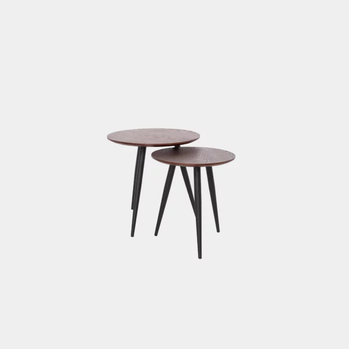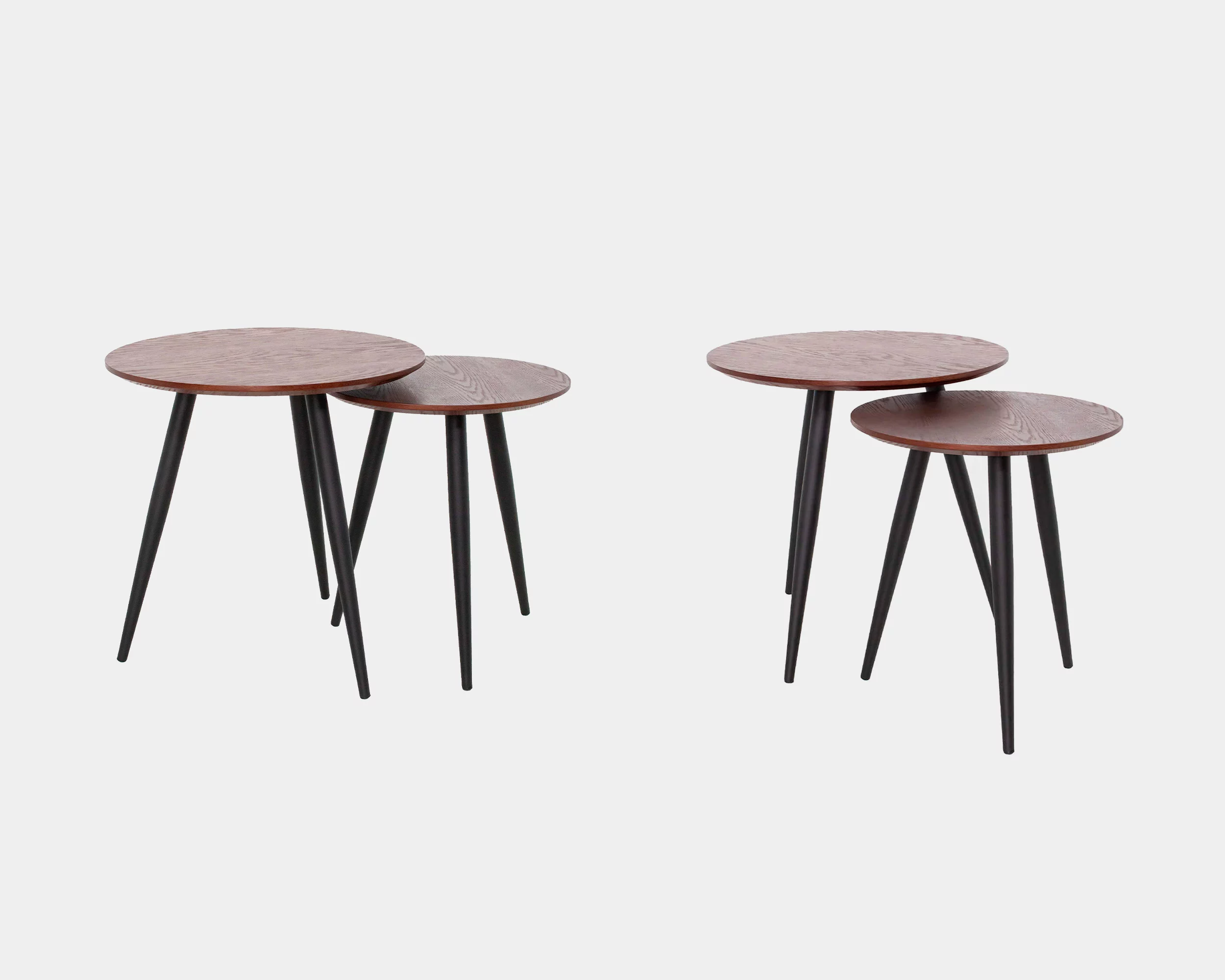 Add a stylish, functional touch to your space with the Zapvu Set of 2 Side Tables. Featuring round dark wood tops paired with sleek, tapered black metal legs, this versatile duo is perfect for placing beside your sofa, armchair, or bed.